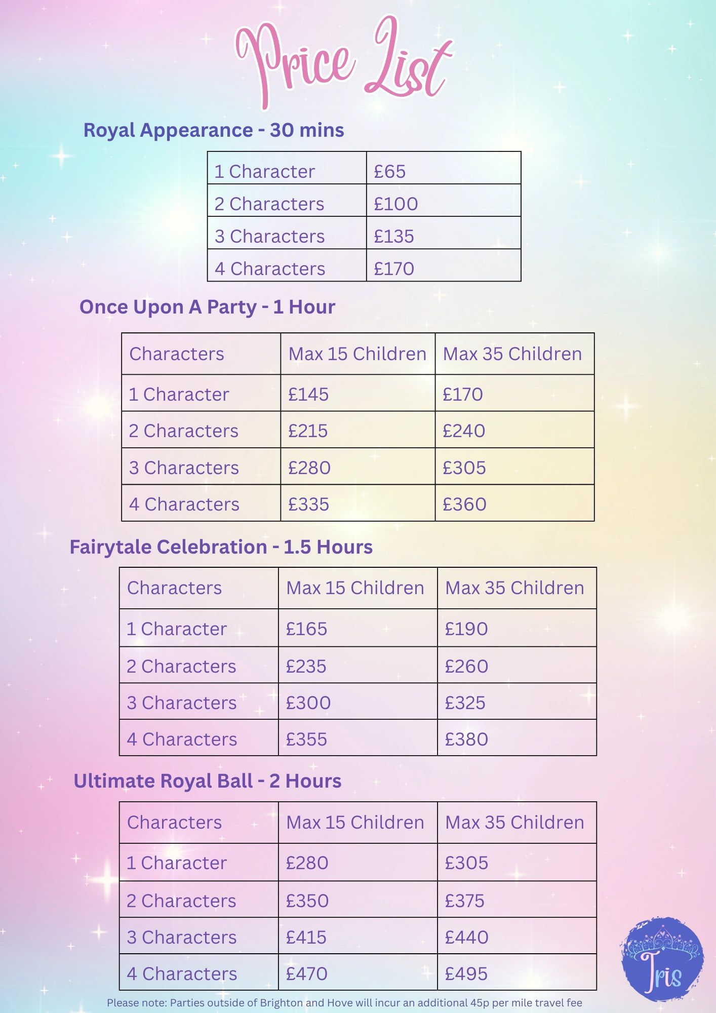 Princess Price List